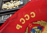 Виды Москвы. Охотный ряд. Жанровая фотография. Красный флаг с символикой СССР на фоне здания Государственной думы России.