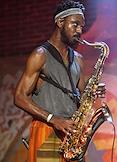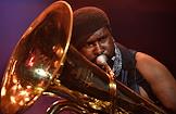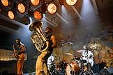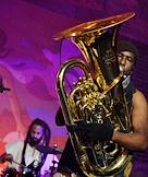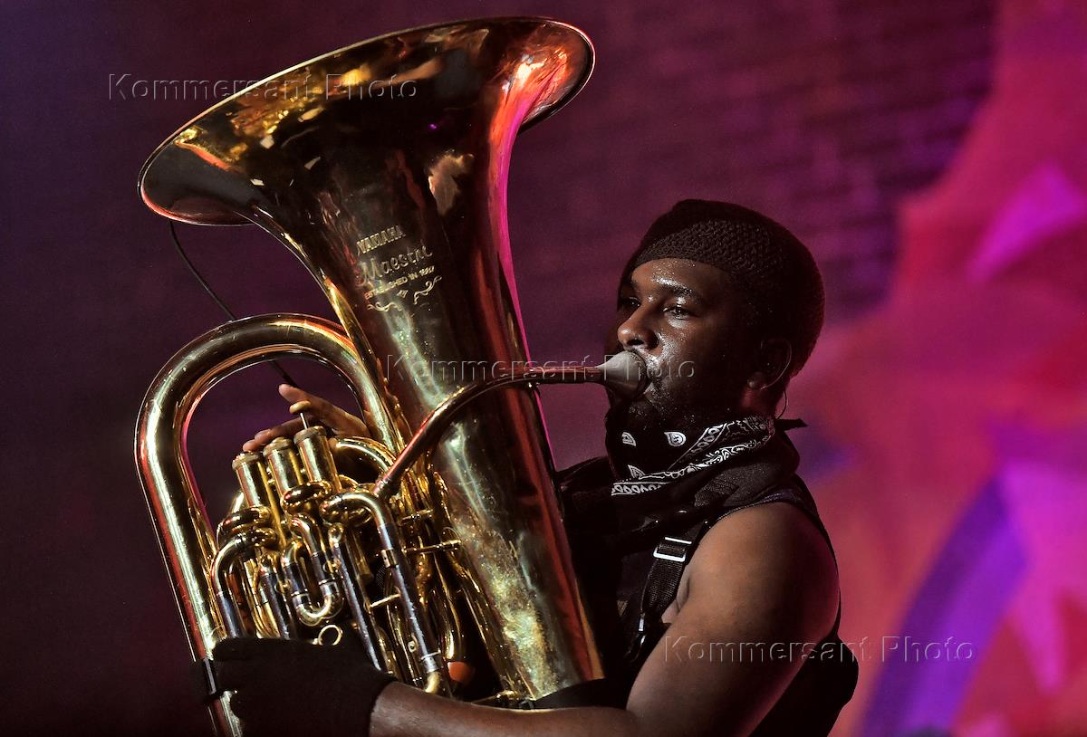 Фестиваль Mosaic Music 2021. Британская джазовая группа Sons of Kemet во время выступления на концерте в Атриуме Музея современного искусства "Гараж".
