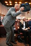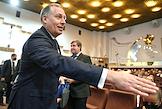 Ежегодное Олимпийское собрание Олимпийского комитета России (ОКР) в конференц-зале ОКР. Президент ОКР Станислав Поздняков (в центре) после окончания собрания.