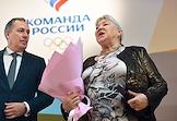 Ежегодное Олимпийское собрание Олимпийского комитета России (ОКР) в конференц-зале ОКР. Президент ОКР Станислав Поздняков (слева) и главный тренер сборной России по синхронному плаванию Татьяна Покровская во время собрания.