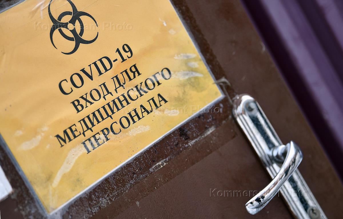 Рабочая поездка председателя правительства Михаила Мишустина в Пермь. Жанровая фотография. Вход в "красную зону" для медицинского персонала Пермской краевой инфекционной больницы.