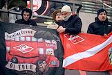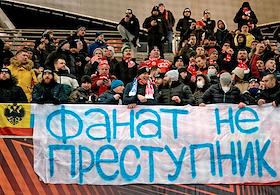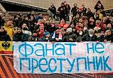 Лига Европы по футболу. Матч между командами "Легия" (Варшава, Польша) - "Спартак" (Москва, Россия) на стадионе имени маршала Юзефа Пилсудского. Плакат болельщиков команды "Спартак" "С выбранной дороги не свернешь..." на трибуне.