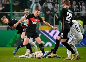 Лига Европы по футболу. Матч между командами "Легия" (Варшава, Польша) - "Спартак" (Москва, Россия) на стадионе имени маршала Юзефа Пилсудского. Игрок команды "Спартак" Роман Зобнин (в центре) во время матча.