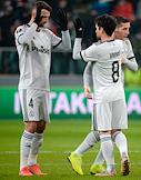 Лига Европы по футболу. Матч между командами "Легия" (Варшава, Польша) - "Спартак" (Москва, Россия) на стадионе имени маршала Юзефа Пилсудского. Игроки команды "Спартак" Георгий Джикия (в центре) и Зелимхан Бакаев (справа) во время матча.
