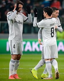 Лига Европы по футболу. Матч между командами "Легия" (Варшава, Польша) - "Спартак" (Москва, Россия) на стадионе имени маршала Юзефа Пилсудского. Игроки команды "Легия" во время матча.