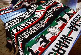 Лига Европы по футболу. Матч между командами "Легия" (Варшава, Польша) - "Спартак" (Москва, Россия) на стадионе имени маршала Юзефа Пилсудского. Торговля шарфами с символикой команды "Легия" перед началом матча.