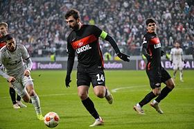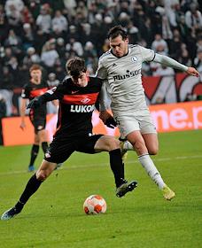 Лига Европы по футболу. Матч между командами "Легия" (Варшава, Польша) - "Спартак" (Москва, Россия) на стадионе имени маршала Юзефа Пилсудского. Игрок команды "Спартак" Георгий Джикия (слева) во время матча.
