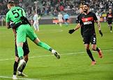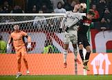 Лига Европы по футболу. Матч между командами "Легия" (Варшава, Польша) - "Спартак" (Москва, Россия) на стадионе имени маршала Юзефа Пилсудского. Вратарь команды "Спартак" Александр Селихов (слева) во время матча.