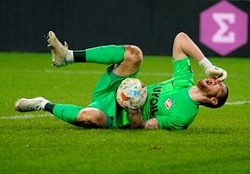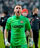 Лига Европы по футболу. Матч между командами "Легия" (Варшава, Польша) - "Спартак" (Москва, Россия) на стадионе имени маршала Юзефа Пилсудского. Вратарь команды "Спартак" Александр Селихов после матча.