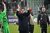 Лига Европы по футболу. Матч между командами "Легия" (Варшава, Польша) - "Спартак" (Москва, Россия) на стадионе имени маршала Юзефа Пилсудского. Вратарь команды "Спартак" Александр Селихов (в центре) и главный тренер команды "Спартак" Руй Витория (справа) после матча.