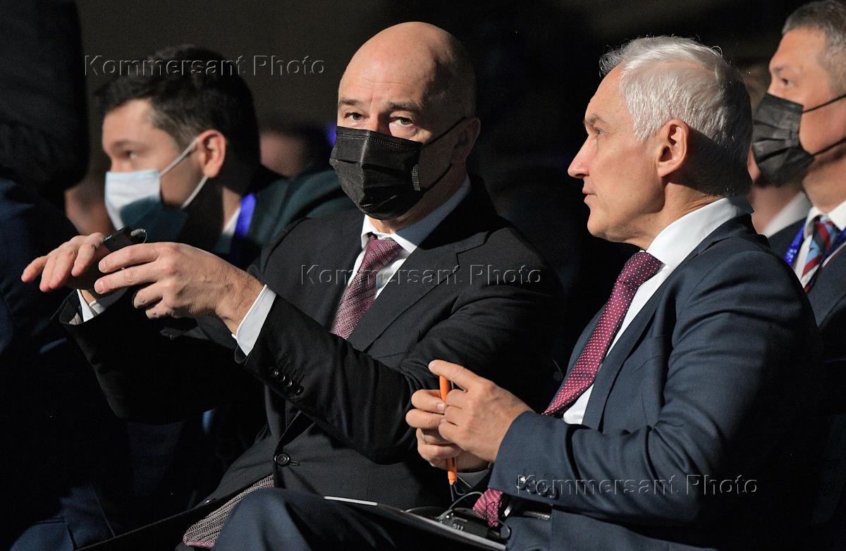 Международный экспортный форум "Сделано в России" в Центре Международной торговли (ЦМТ). Министр финансов России Антон Силуанов (слева) и первый заместитель председателя правительства России Андрей Белоусов (справа) во время форума.