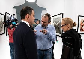 Церемония открытия выставки "Красота и стиль. История модной фотографии" из собрания фонда Still Art в Государственном Эрмитаже. Слева направо: директор Государственного Эрмитажа Михаил Пиотровский, основатели Still Art Михаил Карисалов и Елена Карисалова во время церемонии.