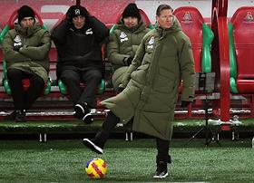 Российская Премьер-Лига (РПЛ). Тинькофф - Чемпионат России по футболу 2021/2022. 18-й тур. Матч между командами "Локомотив" (Москва)- "Уфа" (Уфа) на стадионе "РЖД Арена". Главный тренер команды "Локомотив" Маркус Гисдоль (справа) во время матча.