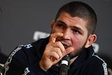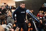 Чемпион UFC в легком весе Хабиб Нурмагомедов во время пресс-конференции, посвященной его сотрудничеству с брендом FITROO и планам его команды на предстоящий год в Центре международной торговли.