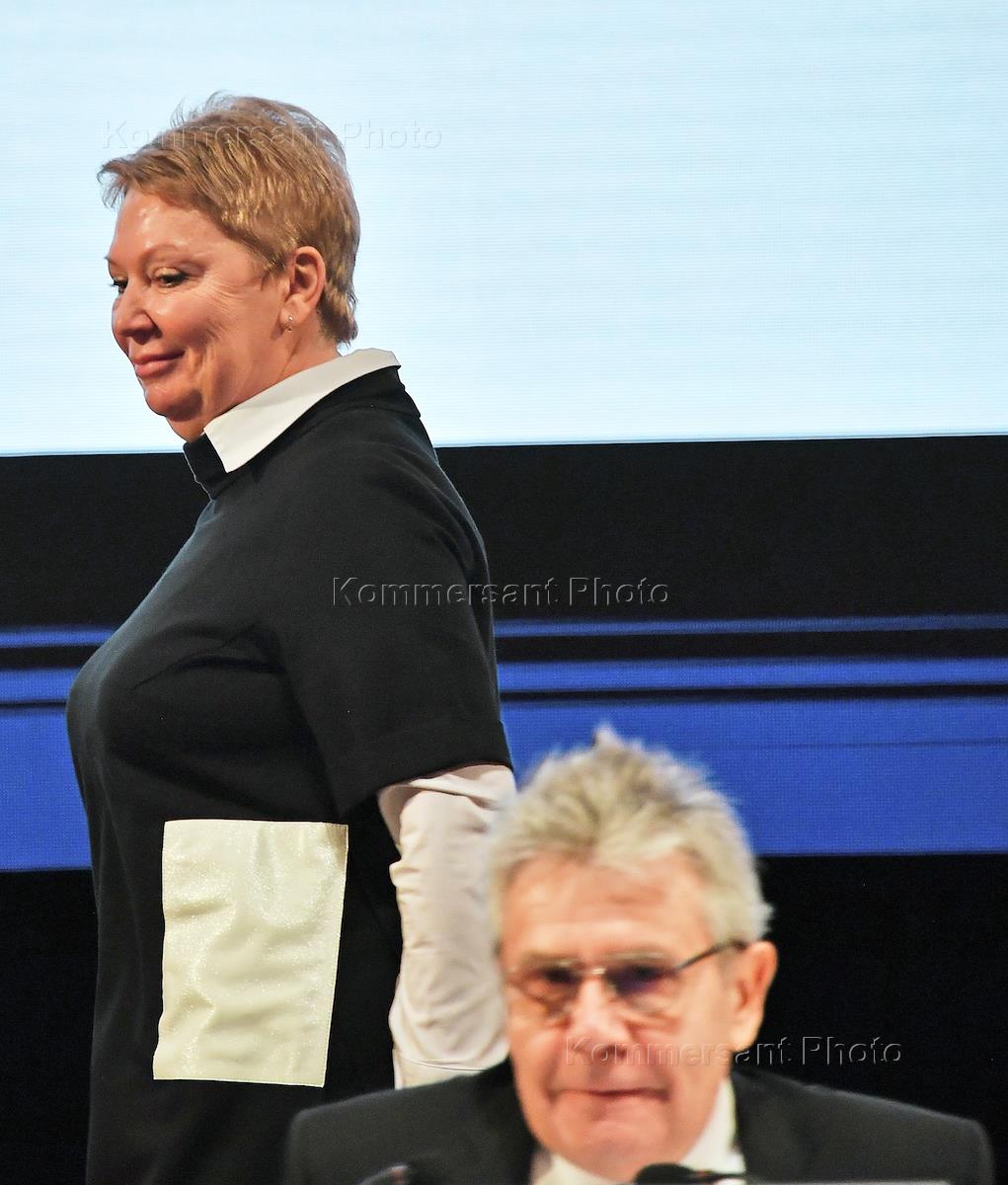 General meeting of members of the Russian Academy of Sciences (RAS) in the building of the RAS Presidium. President of the Russian Academy of Education Olga Vasilyeva (left) and President of the Russian Academy of Sciences Alexander Sergeev (right) during the scientific session "The role of science in overcoming a pandemic and post-crisis development of society."