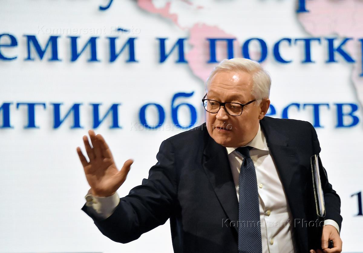General meeting of members of the Russian Academy of Sciences (RAS) in the building of the RAS Presidium. Deputy Foreign Minister of Russia Sergei Ryabkov during the scientific session "The role of science in overcoming a pandemic and post-crisis development of society."