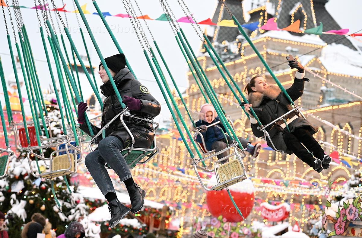 Виды Москвы. Жанровая фотография. Новогоднее убранство города. Посетители Рождественской ярмарки на Красной площади.