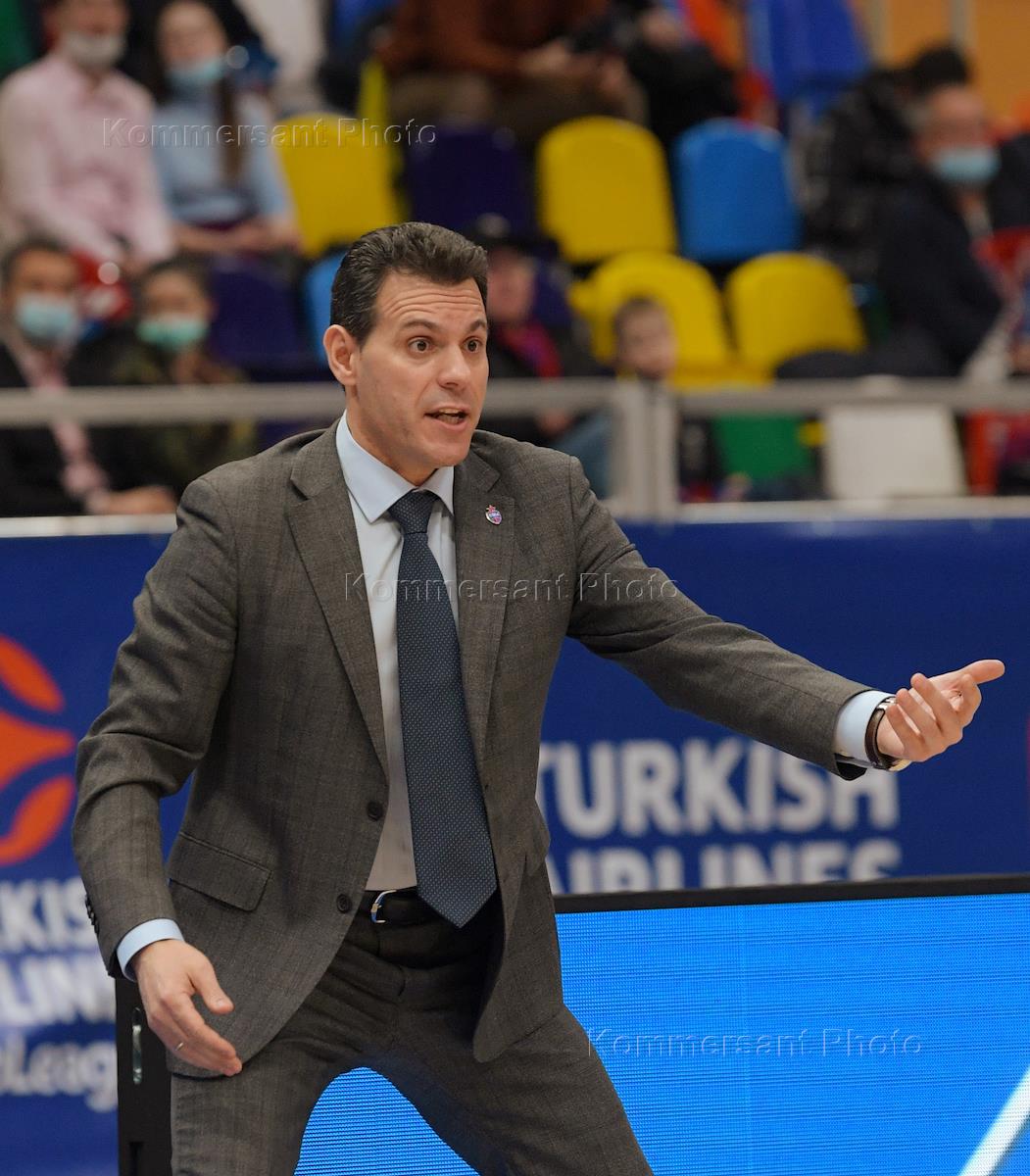 Basketball Euroleague. A match between the teams CSKA (Moscow) - UNICS (Kazan) at the Megasport stadium. CSKA head coach Dimitris Itoudis (left) during a match.