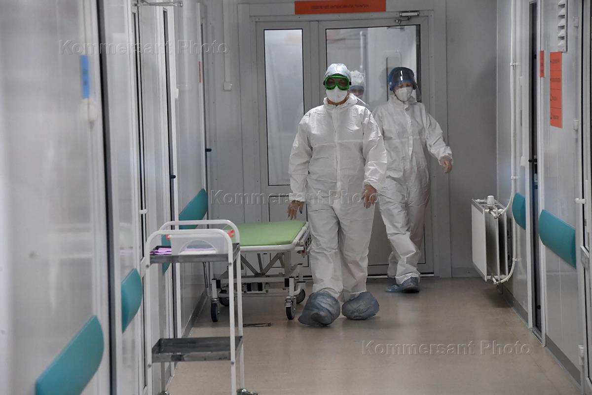 Views of Taishet. Genre photography. Medical workers in the covid ward of a city hospital built by Rusal.