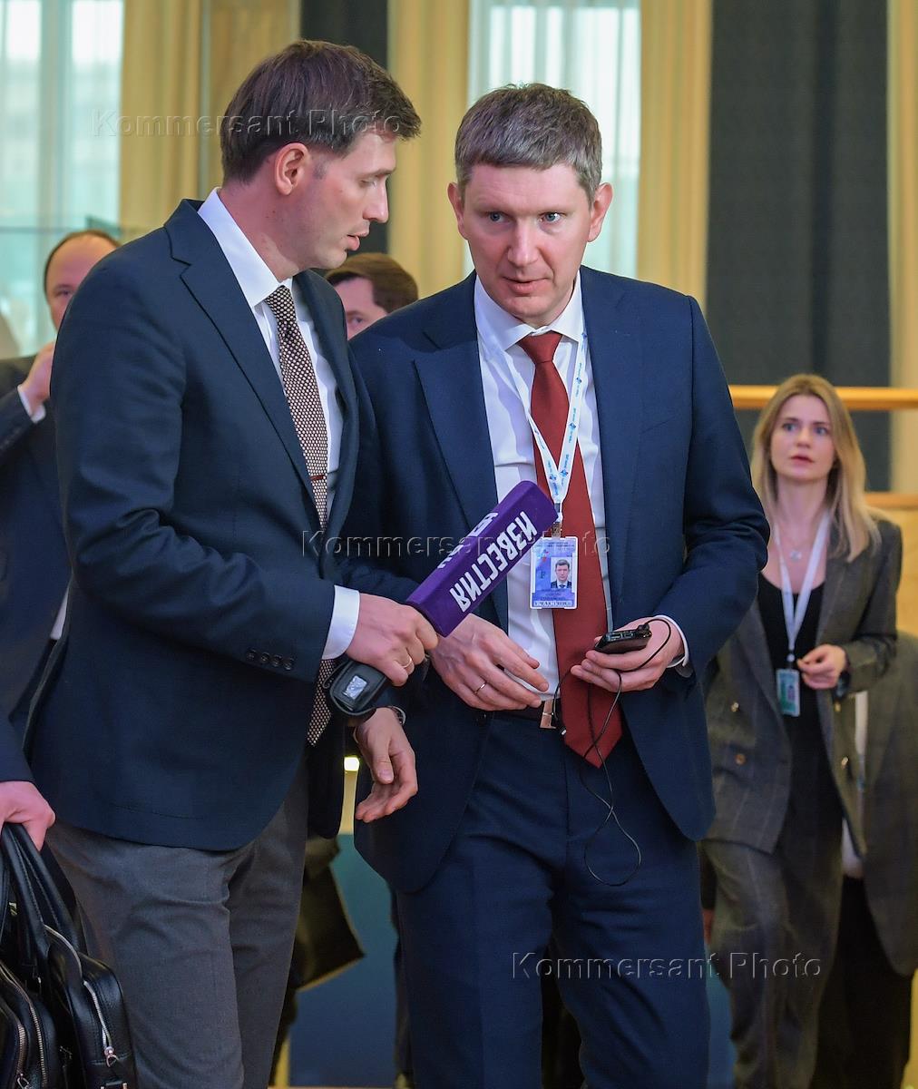Отчетно-выборный съезд Российского союза промышленников и предпринимателей (РСПП) в Государственном Кремлевском дворце. Министр экономического развития России Максим Решетников (справа) во время съезда.