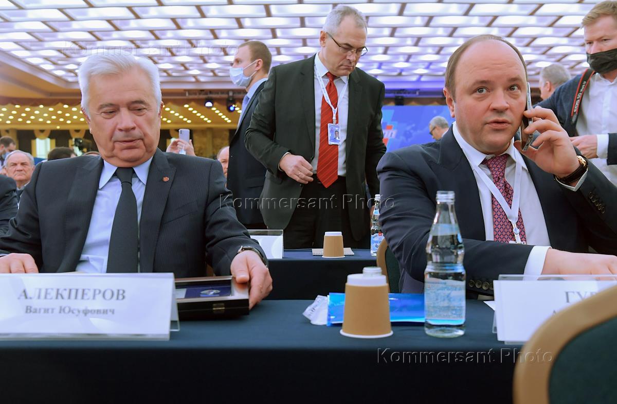 Reporting and election congress of the Russian Union of Industrialists and Entrepreneurs in the State Kremlin Palace. Chairman of the Management Board, CEO of PhosAgro Andrey Guryev (right) and President of the LUKoil oil company Vagit Alekperov (left) during the congress.