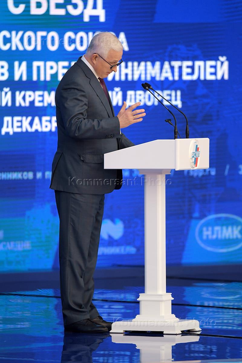 Отчетно-выборный Съезд Российского союза промышленников и предпринимателей (РСПП) в Государственном Кремлевском дворце. Председатель совета директоров ПАО "Магнитогорский металлургический комбинат" Виктор Рашников (в центре) во время съезда.