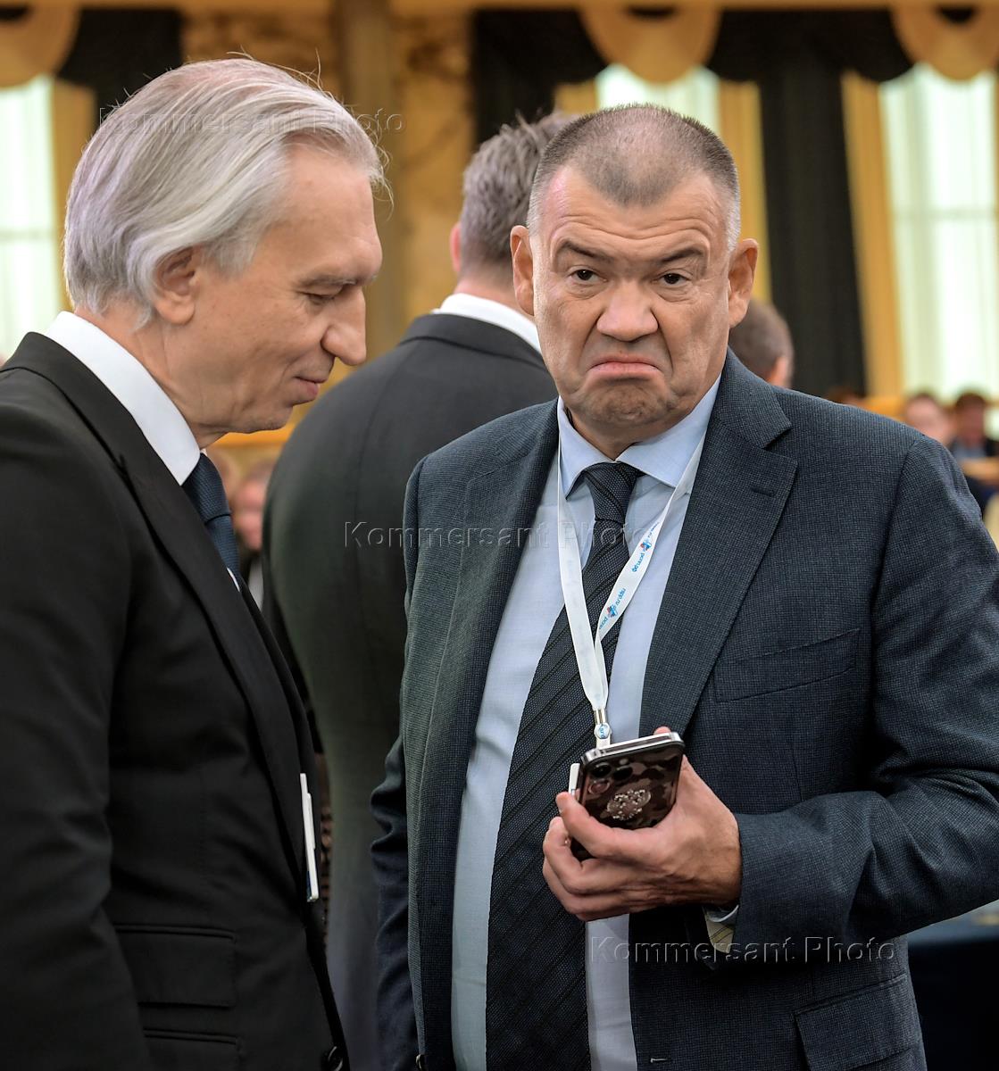 Отчетно-выборный Съезд Российского союза промышленников и предпринимателей (РСПП) в Государственном Кремлевском дворце. Председатель правления, генеральный директор ПАО "ФосАгро" Андрей Гурьев (слева) во время съезда.