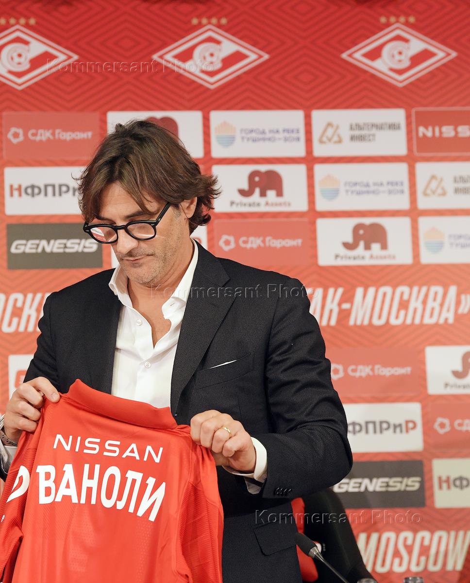 Пресс-конференция руководства футбольного клуба (ФК) "Спартак". Новый главный тренер ФК "Спартак" Паоло Ваноли во время пресс-конференции.