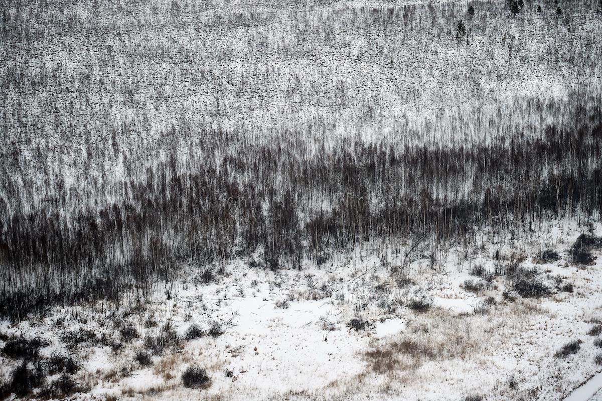 Winter views of the Novosibirsk region from the helicopter window. Genre photography.
