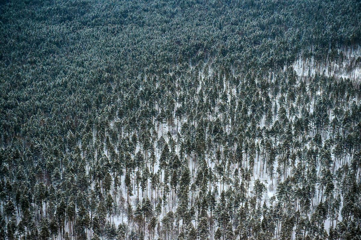 Зимние виды Новосибирской области из иллюминатора вертолета. Жанровая фотография. Зимняя тайга.