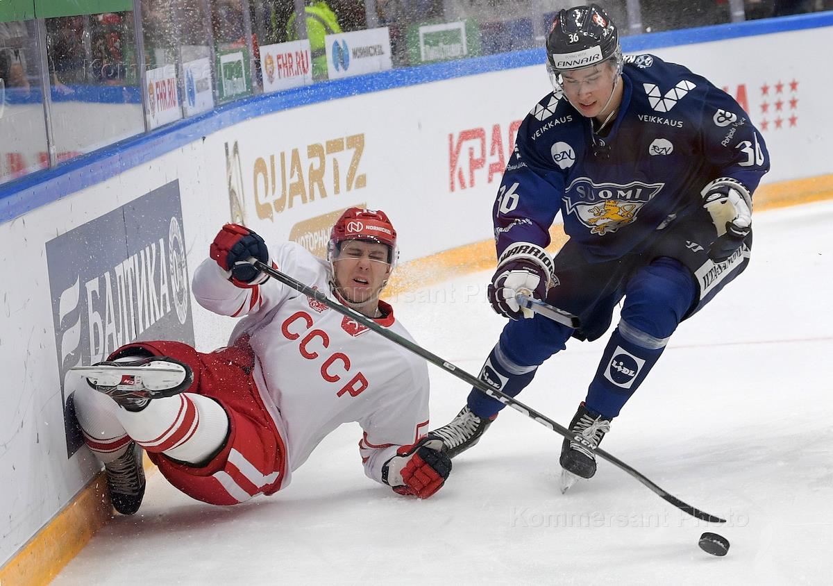 Кубок Первого канала по хоккею. Матч между сборными командами России и Финляндии на стадионе "ЦСКА-Арена". Игрок сборной Финляндии Пеэтро Сеппяля (справа) во время матча.