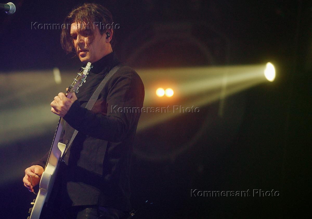 Музыкальный фестиваль "Вершина Рока II". Выступление рок-групп "Кино" и "ДДТ" на основной сцене Music Media Dome. Участник группы "Кино" Юрий Каспарян во время выступления.