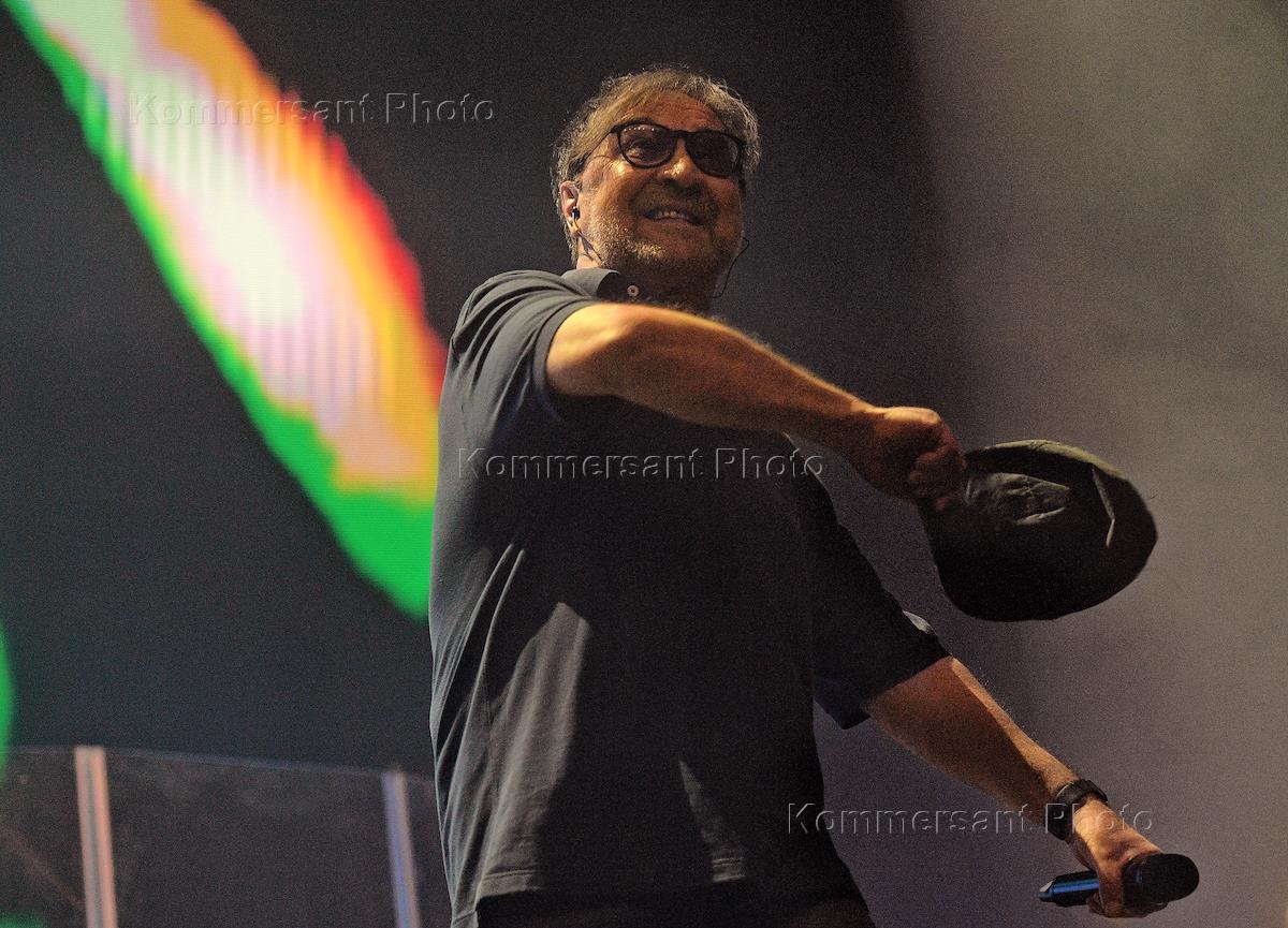 Music festival "Top of Rock II". Performance of the rock bands "Kino" and "DDT" on the main stage of the Music Media Dome. Yury Shevchuk, leader of the DDT group, performing.