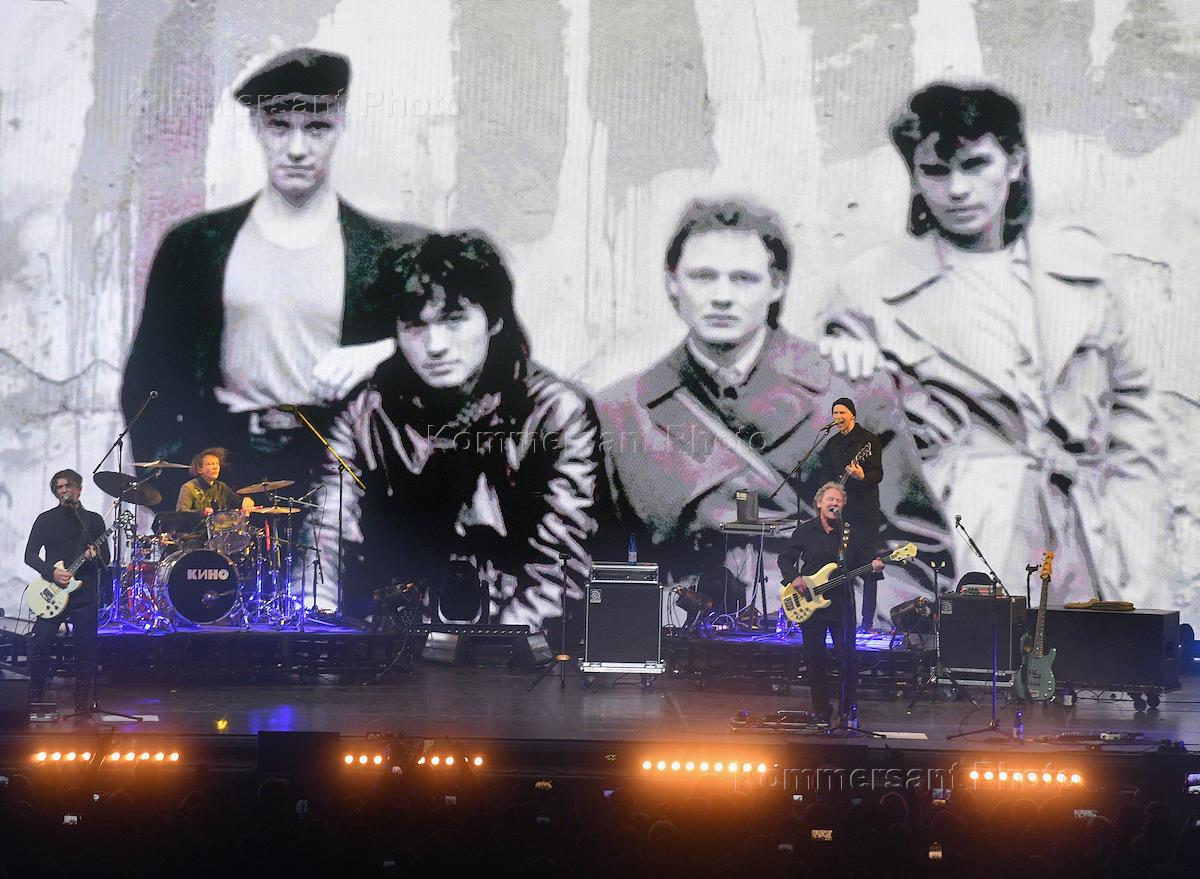Music festival "Top of Rock II". Performance of the rock bands "Kino" and "DDT" on the main stage of the Music Media Dome. The Kino group during a performance.