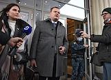 Consideration of the lawyers' complaint about the extension of the term of detention of the rector of the Moscow Higher School of Social and Economic Sciences ("Shaninka") Sergei Zuev, who was arrested in the case of fraud in the Moscow City Court. Lawyer Sergei Sevruk answers journalists' questions outside the courthouse.