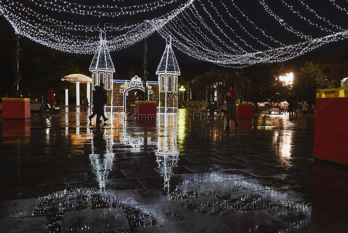Views of Yalta. Genre photography. New Year's decoration of the city.