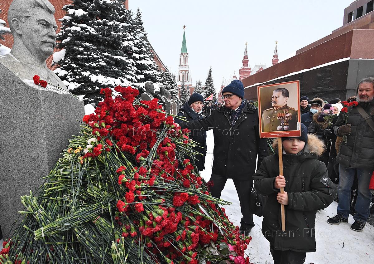 Церемония возложения венков и цветов к могиле Иосифа Сталина у Кремлевской стены в день его 142-летия.