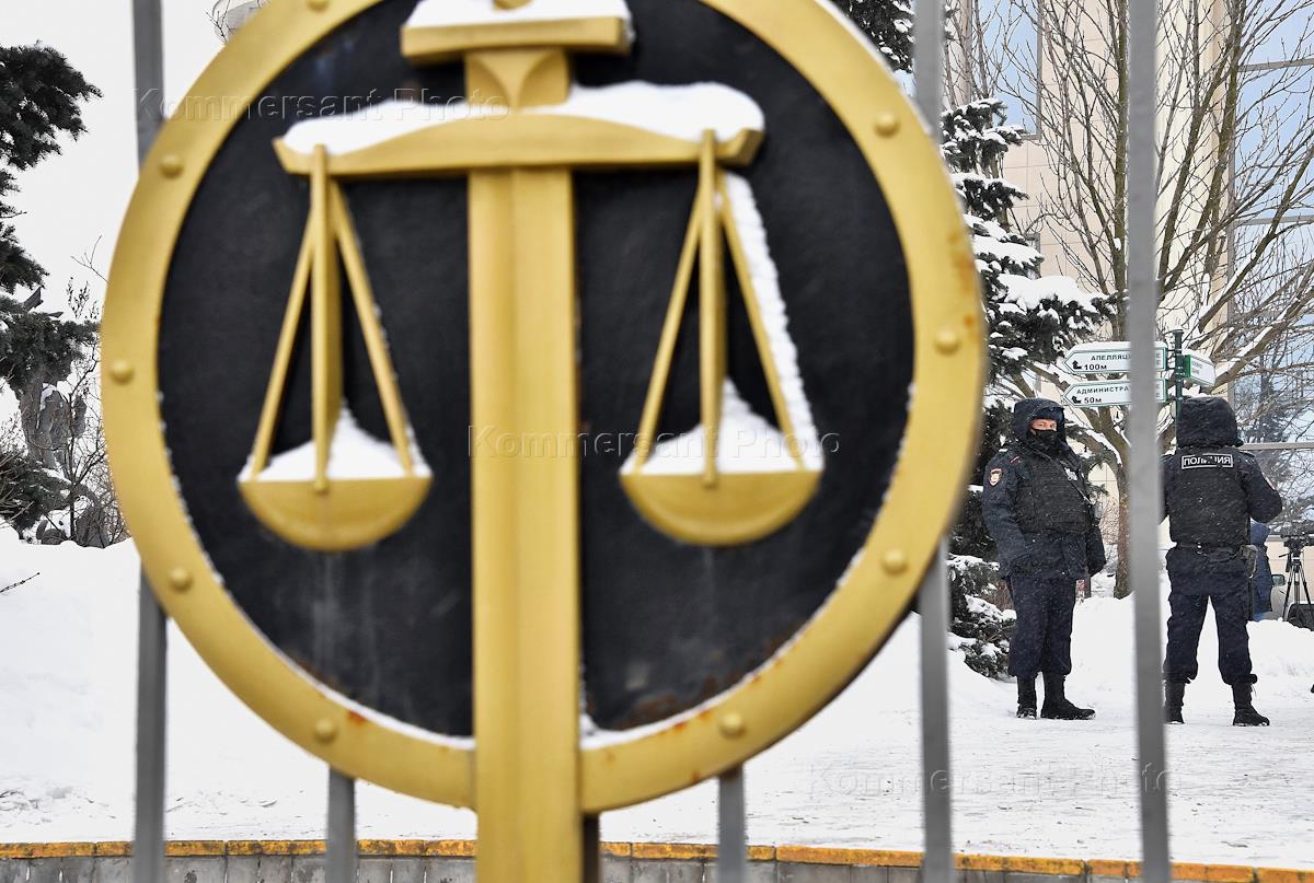 Рассмотрение жалобы адвокатов на продление срока содержания под стражей ректора Московской высшей школы социальных и экономических наук ("Шанинка") Сергея Зуева, арестованного по делу о мошенничестве, в Московском городском суде. Жанровая фотография. Здание Московского городского суда.