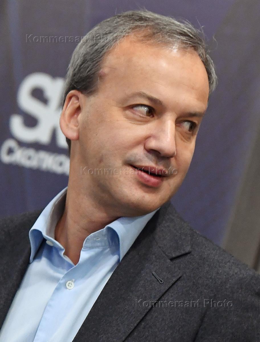 Подведение итогов ежегодной акселерационной программы в сфере девелопмента, строительства, продаж и эксплуатации объектов недвижимости Build UP в городской лаборатории ВЭБ.РФ. Председатель фонда "Сколково", президент Международной шахматной федерации (FIDE) Аркадий Дворкович во время подведения итогов.