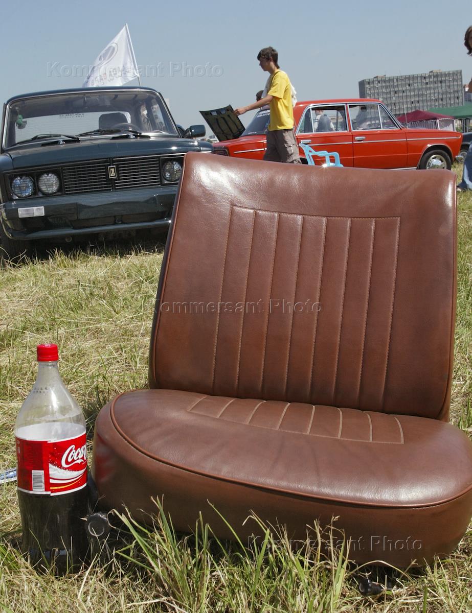 Открытие Московского международного автомобильного шоу "Автоэкзотика - 2006" на территории аэродрома Тушино. Объявление на лобовом стекле автомобиля "В ремонт".