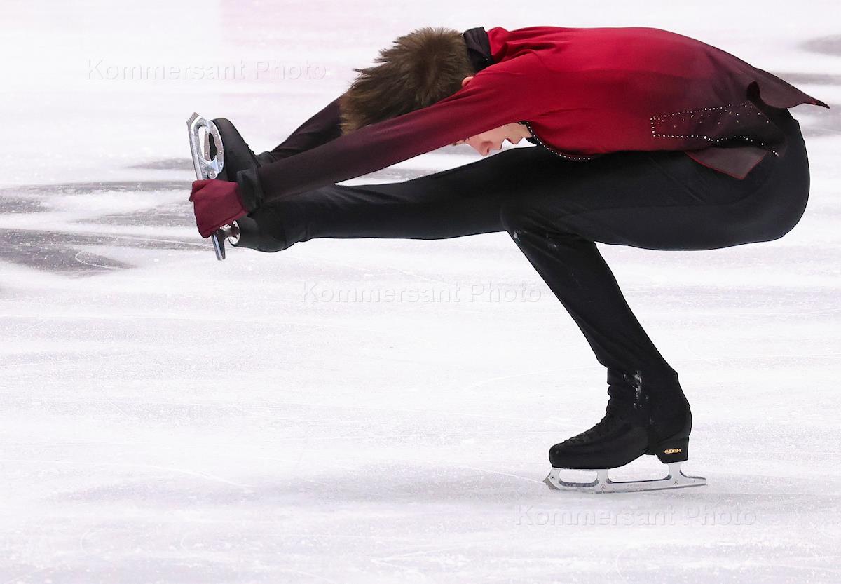 Ростелеком-Чемпионат России - 2022 по фигурному катанию на коньках в спорткомплексе "Юбилейный". Мужчины. Короткая программа. Фигурист Макар Игнатов во время выступления.