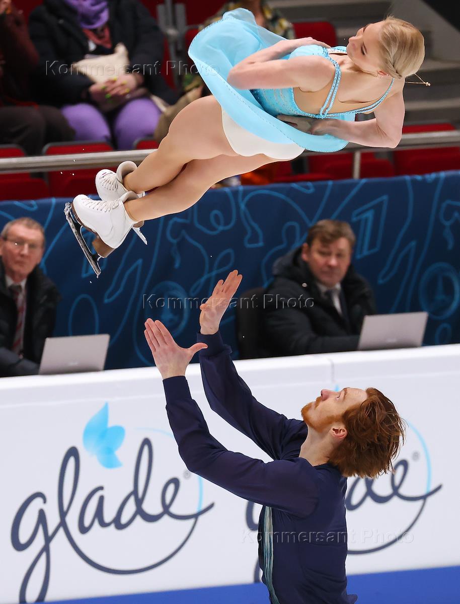 Ростелеком-Чемпионат России - 2022 по фигурному катанию на коньках в спорткомплексе "Юбилейный". Парное катание. Короткая программа. Фигуристы Екатерина Гейниш и Илья Миронов во время выступления.