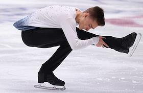 Ростелеком Чемпионат России по фигурному катанию 2022. Мужчины. Короткая программа. Фигурист Владислав Дикиджи во время выступления.