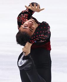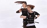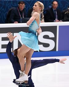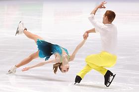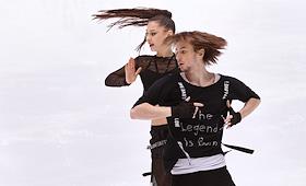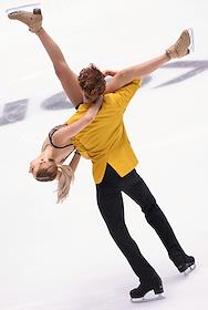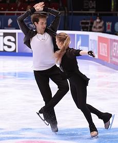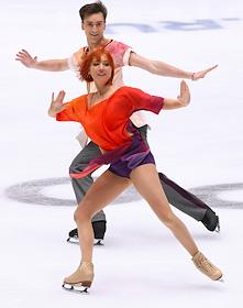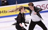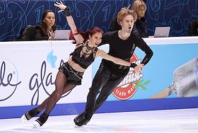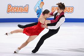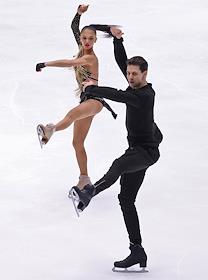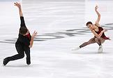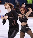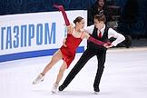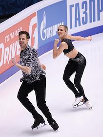 Ростелеком-Чемпионат России - 2022 по фигурному катанию на коньках в спорткомплексе "Юбилейный". Танцы на льду. Ритм-танец. Фигуристы Тиффани Загорски и Джонатан Гурейро во время выступления.