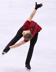 Ростелеком-Чемпионат России - 2022 по фигурному катанию на коньках в спорткомплексе "Юбилейный". Мужчины. Короткая программа. Фигурист Марк Кондратюк во время выступления.