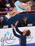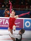 Ростелеком-Чемпионат России - 2022 по фигурному катанию на коньках в спорткомплексе "Юбилейный". Парное катание. Короткая программа. Фигуристы Юлия Артемьева и Михаил Назарычев во время выступления.
