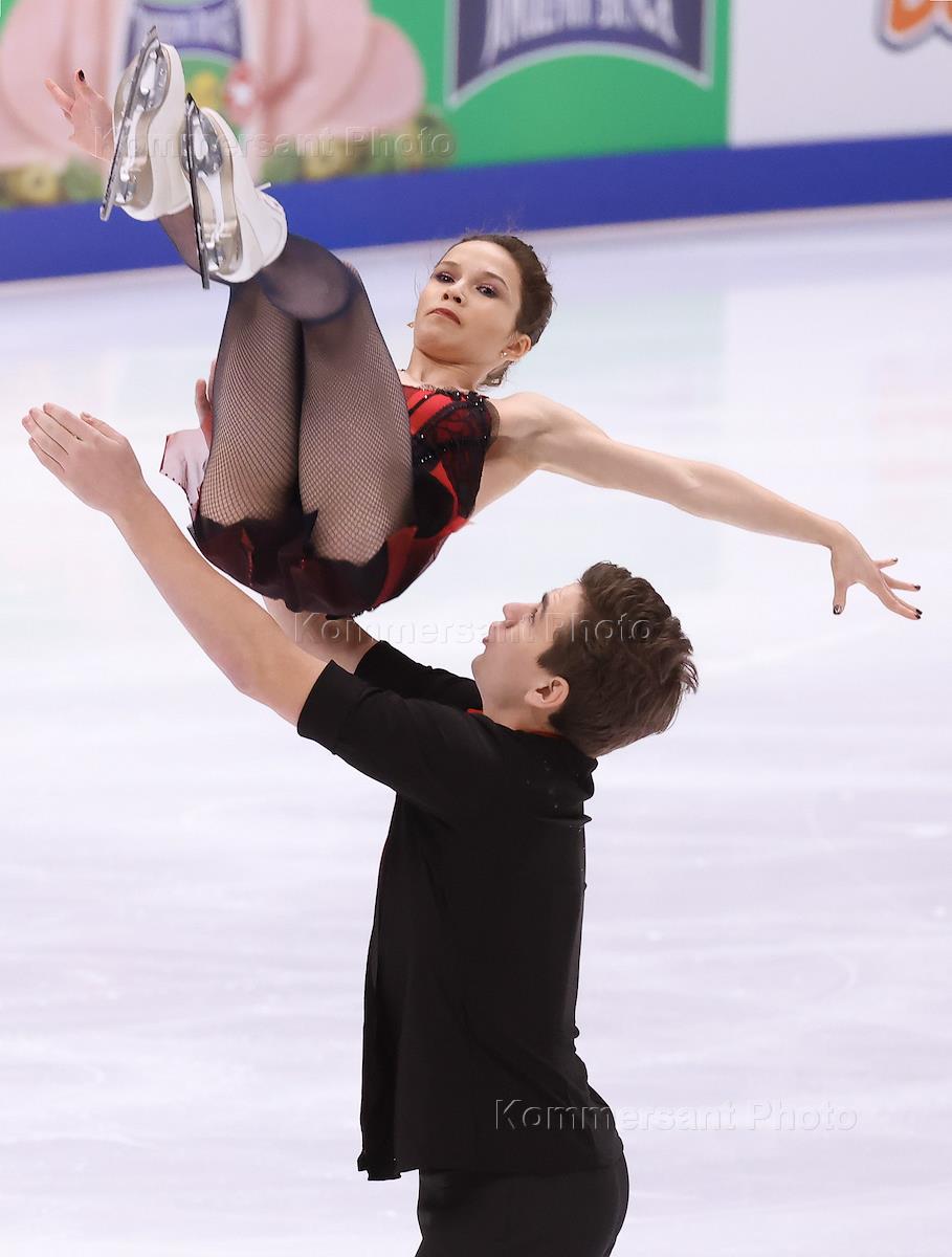 Ростелеком-Чемпионат России - 2022 по фигурному катанию на коньках в спорткомплексе "Юбилейный". Парное катание. Короткая программа. Фигуристы Наталья Хабибуллина и Илья Княжук во время выступления.