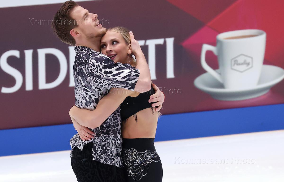 Ростелеком-Чемпионат России - 2022 по фигурному катанию на коньках в спорткомплексе "Юбилейный". Танцы на льду. Ритм-танец. Фигуристы Диана Дэвис и Глеб Смолкин во время выступления.