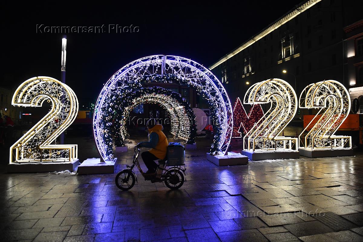 Виды Москвы. Новогоднее украшение города. Жанровая фотография. Декоративная инсталляция "2022" на Тверском бульваре.