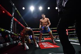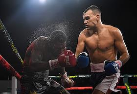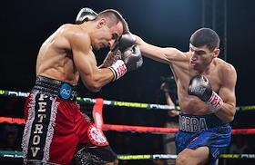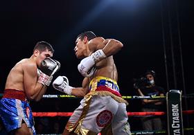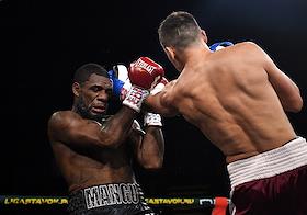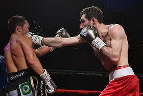 Вечер профессионального бокса, организованный промоутерской компанией Dynamo boxing promotion, в УСК "Крылья Советов". Российский боксер Альберт Батыргазиев во время поединка с венесуэльским боксером Франклином Мансанильей.